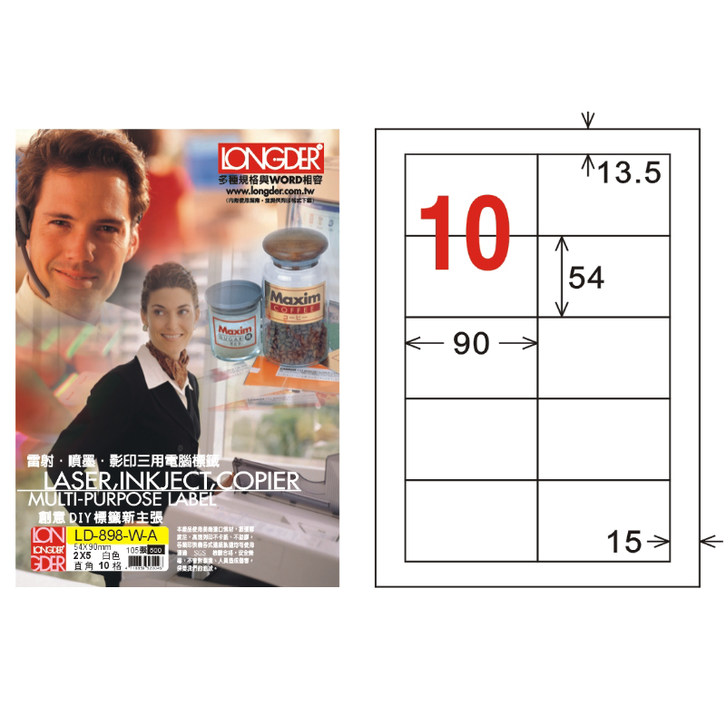 / 龍德A4 10格自粘標LD-898-W-A(105張)