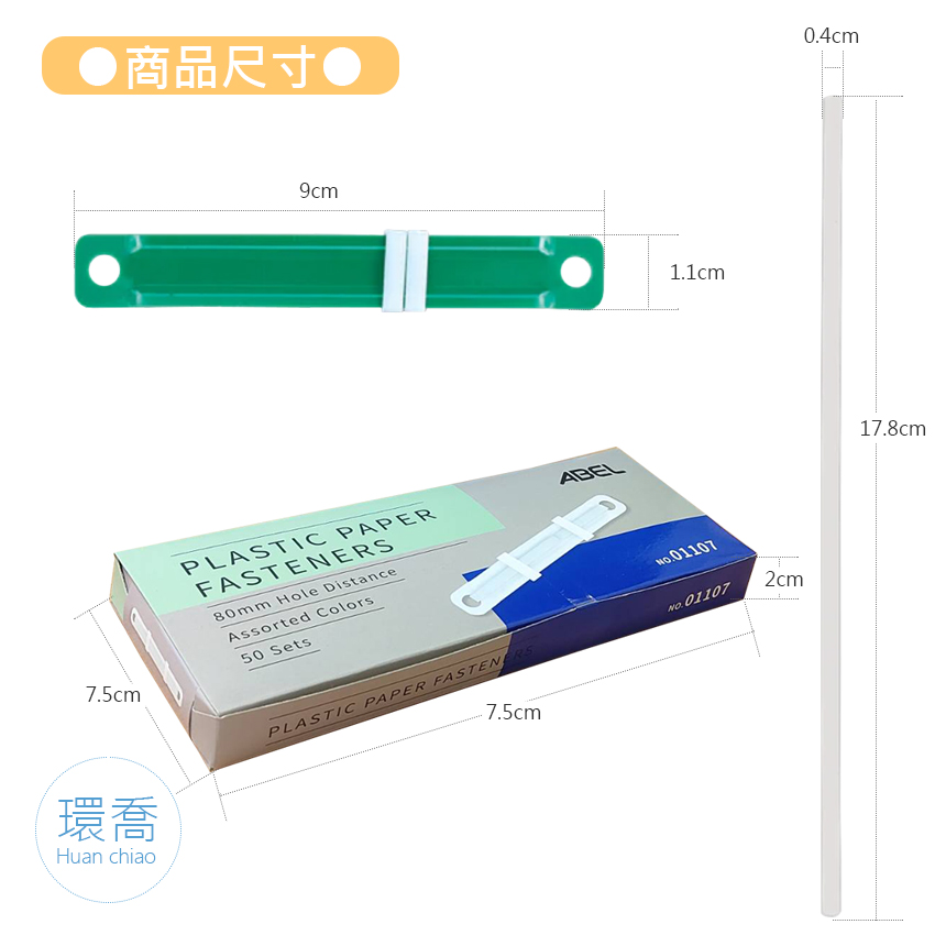 ABEL 01107 80mm塑膠原子夾 一盒50入-混色