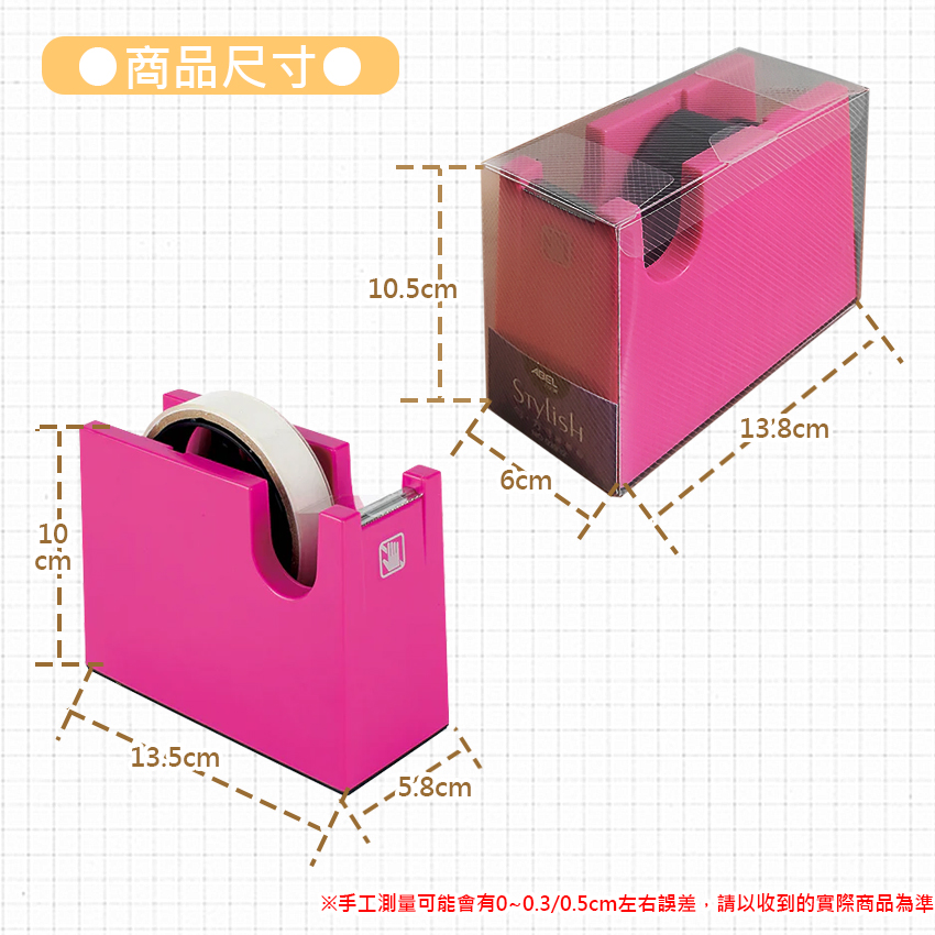 適用膠帶內圓寬度:1″ & 3″ 大捲/小捲膠帶皆可搭配使用
