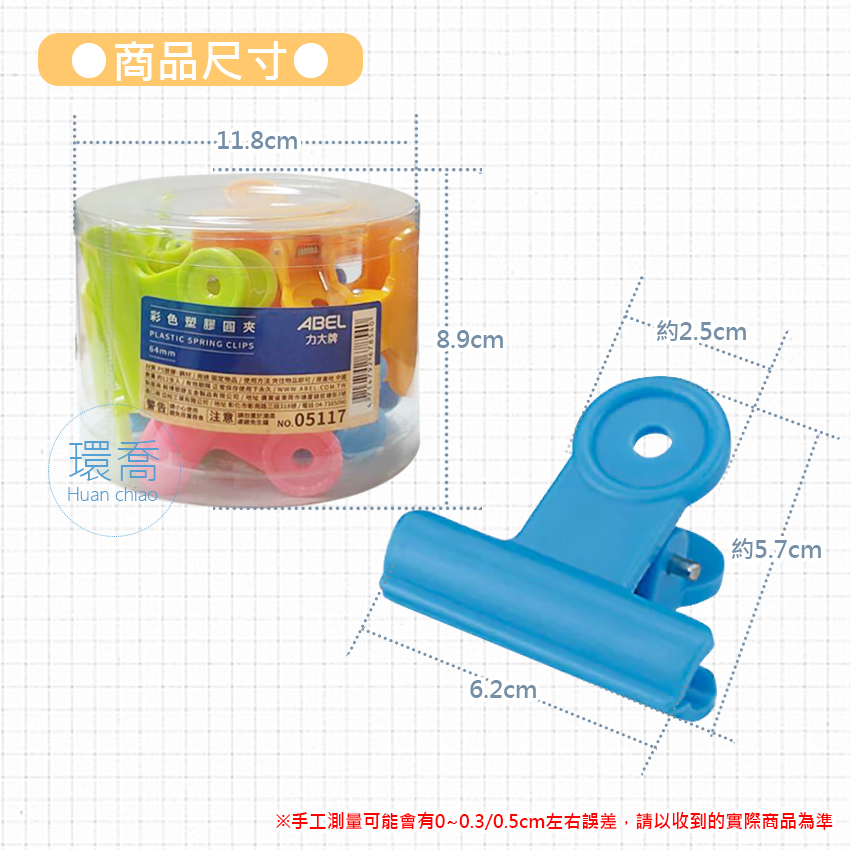 商品內容:ABEL 05117 山型夾 圓形夾 64mm 塑膠圓夾 12入一桶
