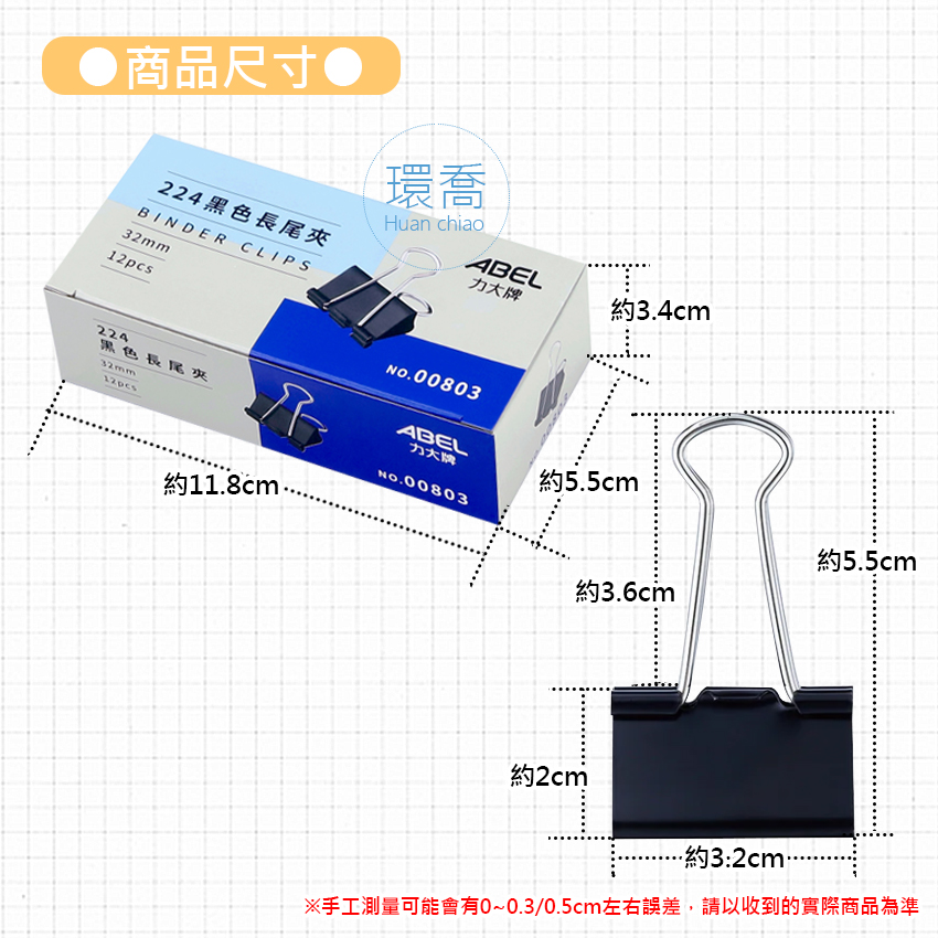 ABEL 224 32mm 黑色長尾夾 1 1/4″ X 一盒12入