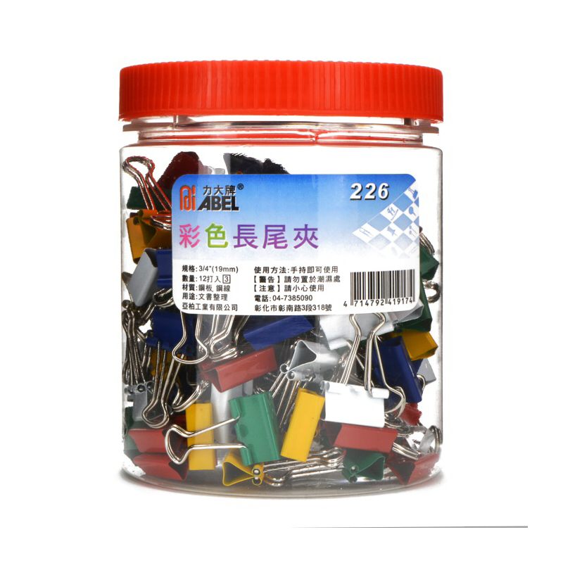 型號:ABEL 3/4″彩色長尾夾226/桶