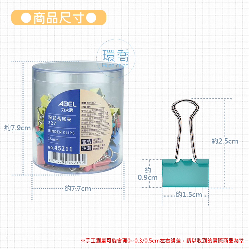 ●注意事項: 由於顯示器規格,顏色可能會與實品略有誤差,請以收到的實際商品為準 銳利物品請勿讓12歲以下兒童拿取,並請大人陪同使用 長尾夾混色出貨,可能會有非圖片上的商品顏色,尺寸與規格不變