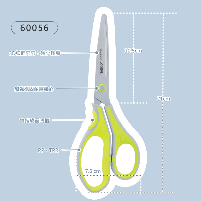 ABEL 60056 3D魔利剪 弧面防沾黏剪刀 8.25″ (210mm)