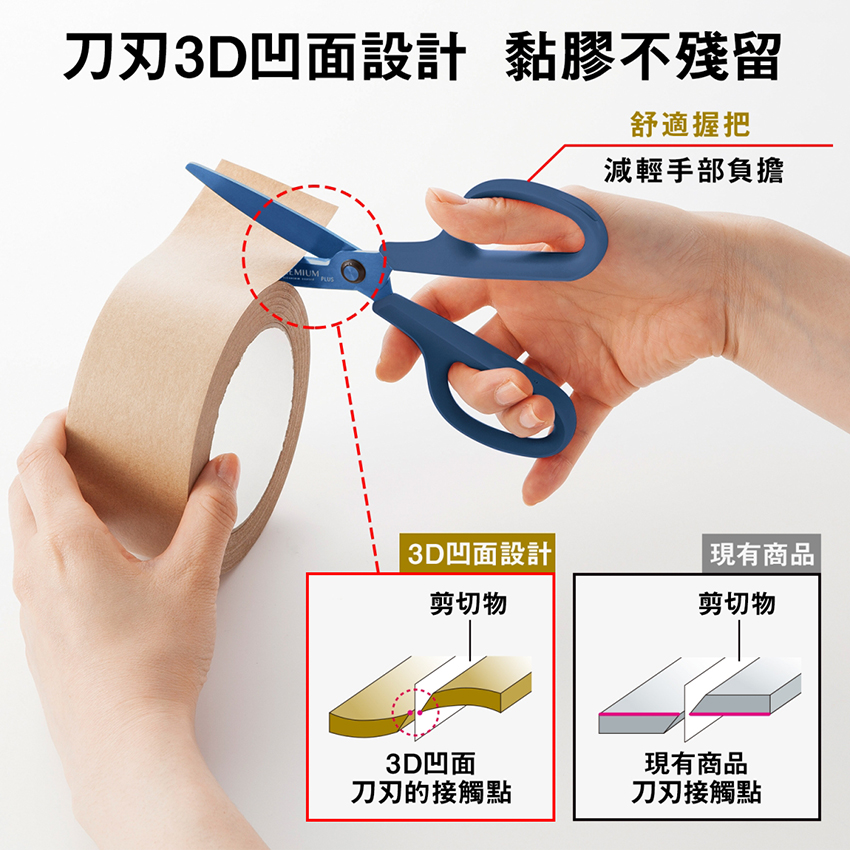 ●刀刃採用3D凹面不沾膠設計