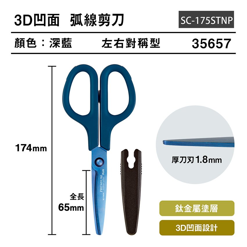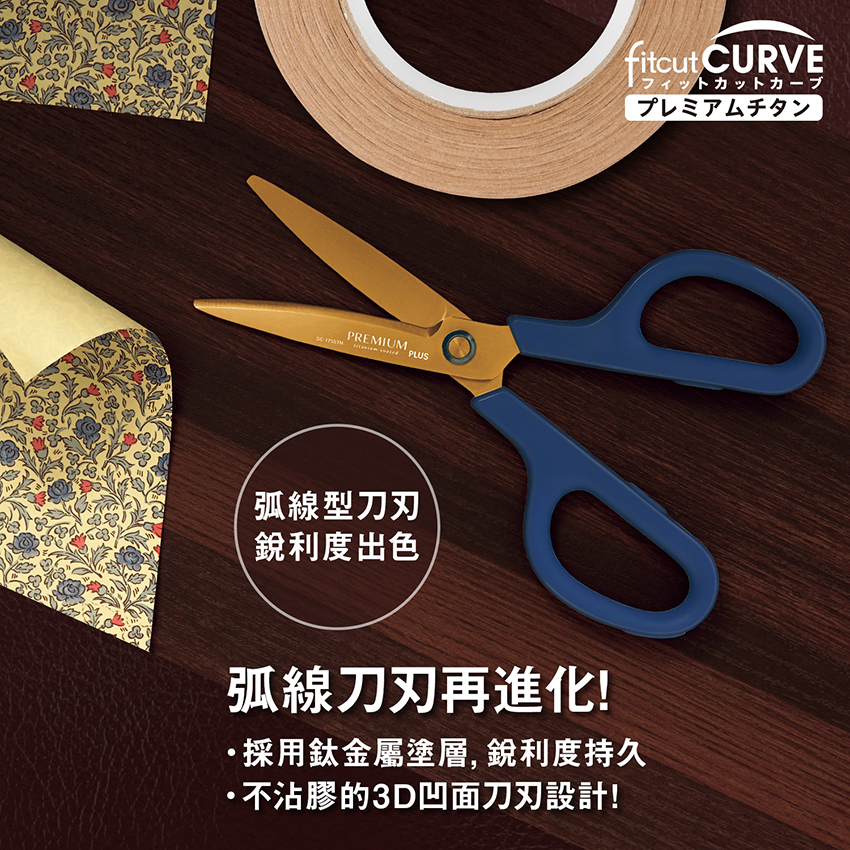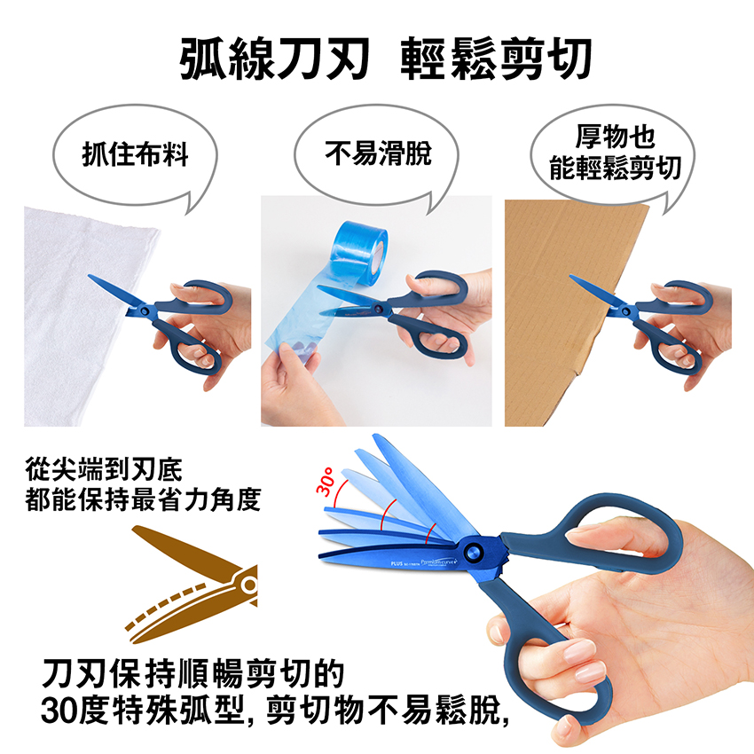 PLUS 34-770 SC-175STN30度弧線剪刀 鈦金屬+3D凹面不沾膠 (174mm)