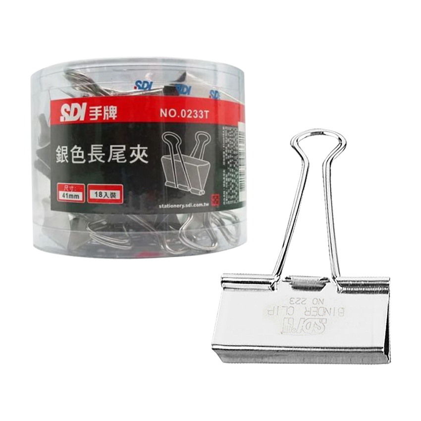 SDI 0233T 41mm銀色長尾夾X一桶18入