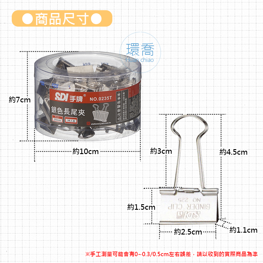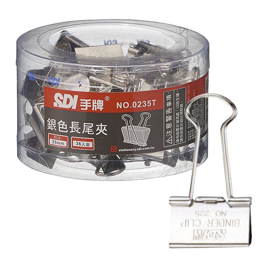 SDI 0235T 25mm銀色長尾夾X一桶36入