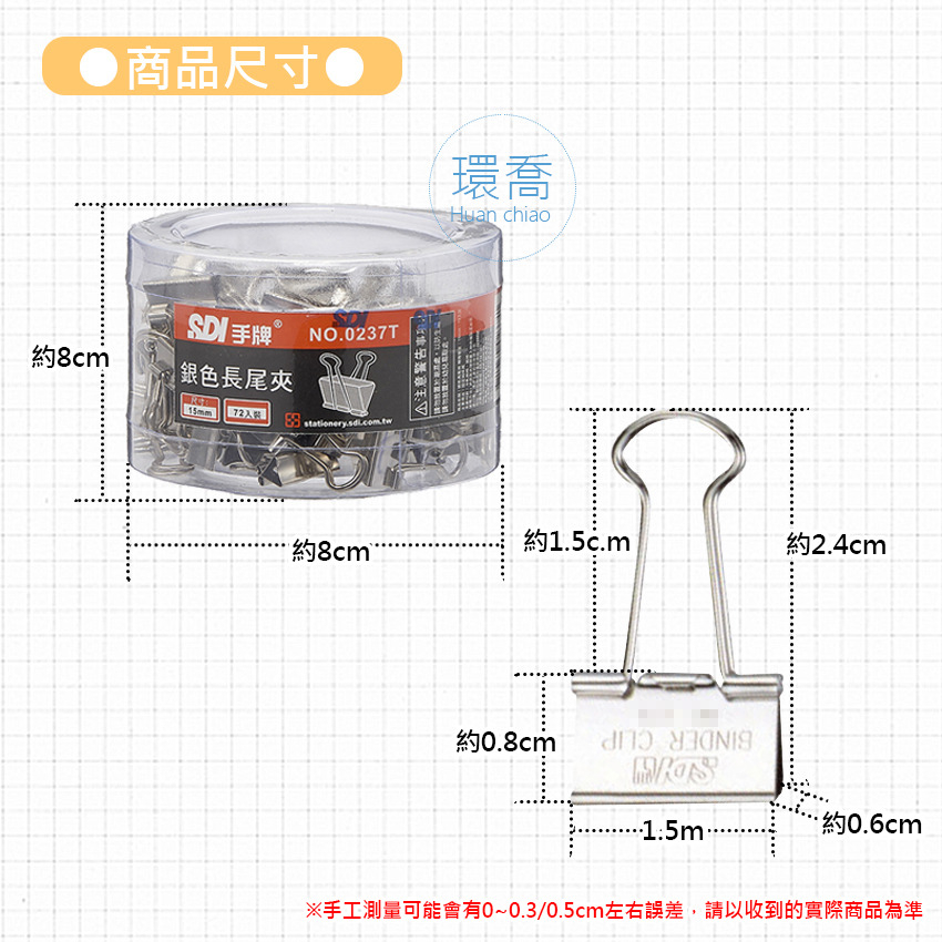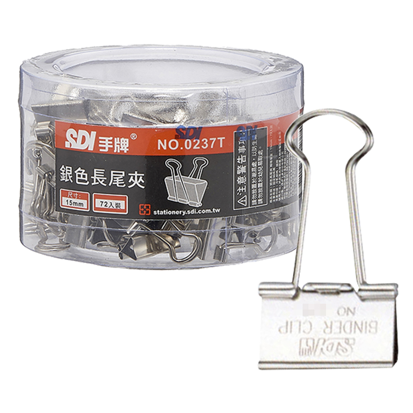 SDI 0237T 15mm 銀色長尾夾X一桶72入