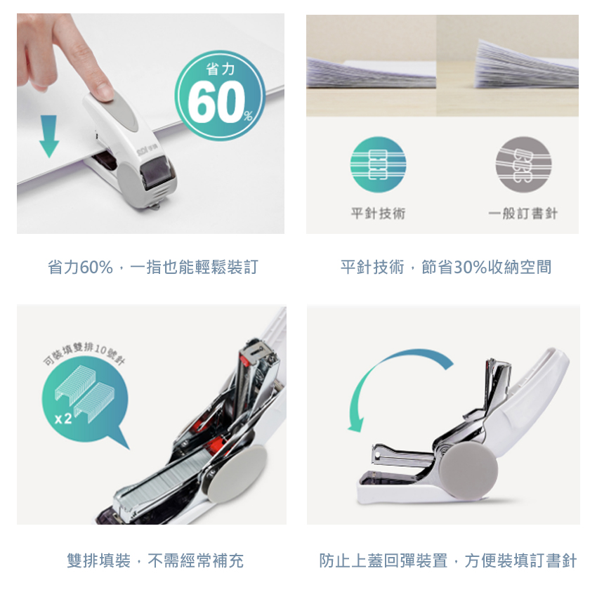 最高可裝訂30張70gsm影印紙,最適合多頁數文件